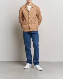 J.Lindeberg Errol Linen/Cotton Workwear Overshirt Tiger Brown S