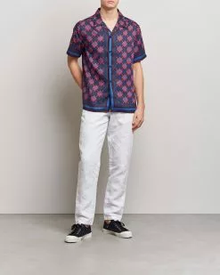 J.Lindeberg Elio Tropical Print Short Sleeve Shirt Navy M