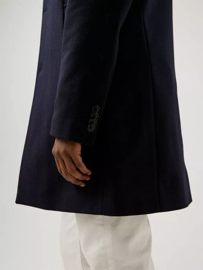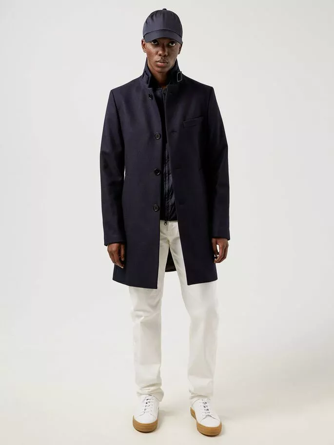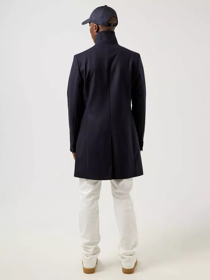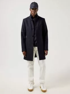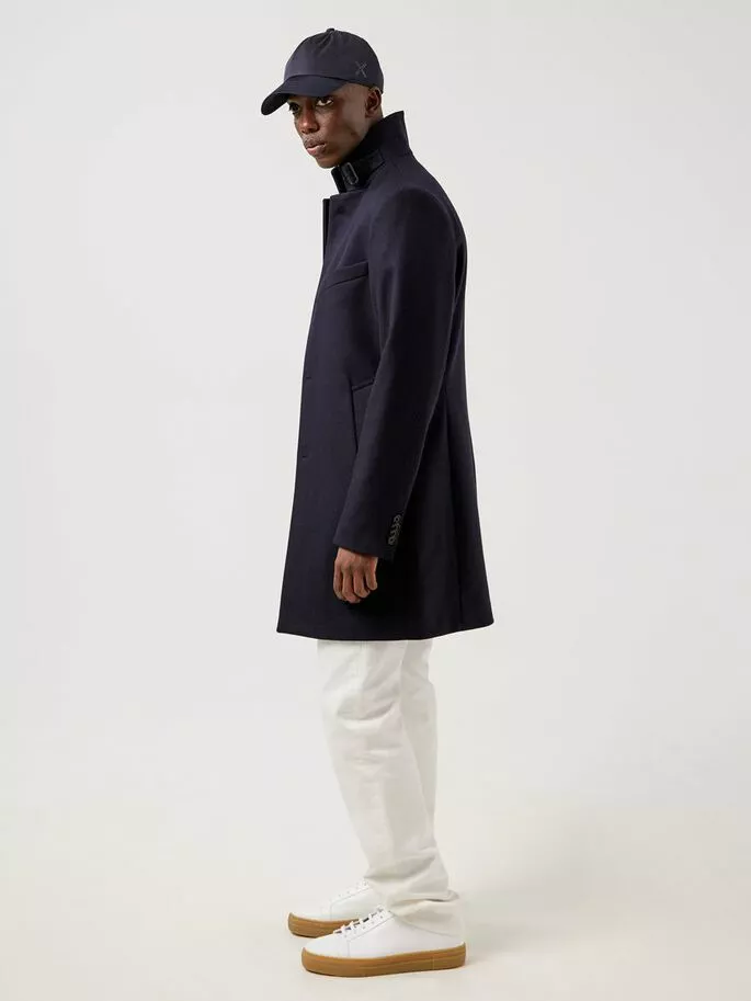 Holger Compact Melton Coat fra J.Lindeberg. Denne klassiske frakken er laget av høykvalitets melton-ull fra Italia. Stoffet er naturlig vannavvisende og har gode fukttransporterende og luktavstøtende egenskaper. Denne stylen har miljøvennlige corozo-knapper og en fin stropp med spenne i kragen. Den smale passformen er perfekt til layering, med nok rom til en genser eller blazer under. Dette tidløse plagget forblir en garderobefavoritt år etter år.